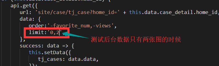 1、将查询结果限定为 2张图的时候(模拟后台数据较少的情况),前端 推荐案例 显示空白