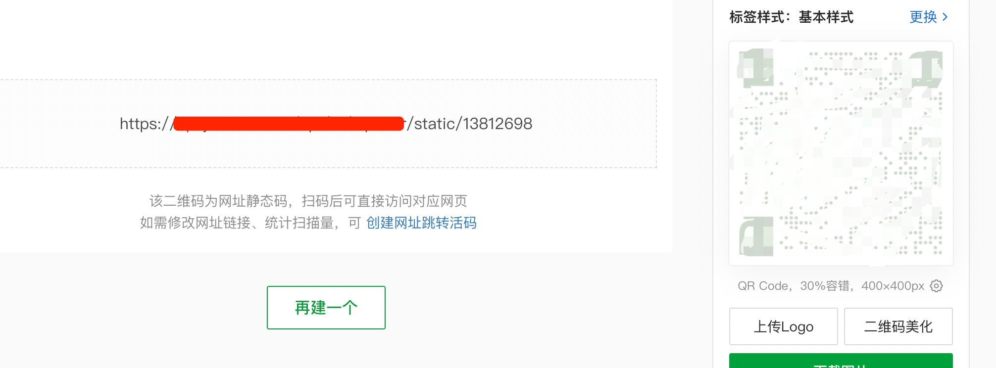 2):把链接https://api.*****.com/api/v1/ai/static/138126985通过草料二维码生成普通二维码