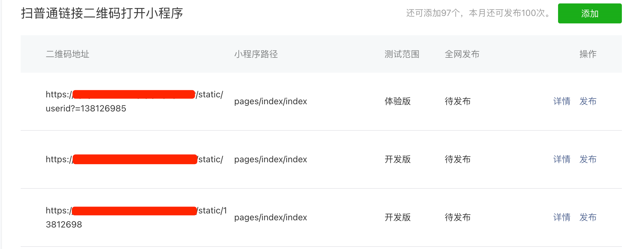 1):在小程序后台配置了普通二维码链接【https://api.*****.com/api/v1/ai/static/13812698】跳转小程序的具体页面【pages/index/index】。