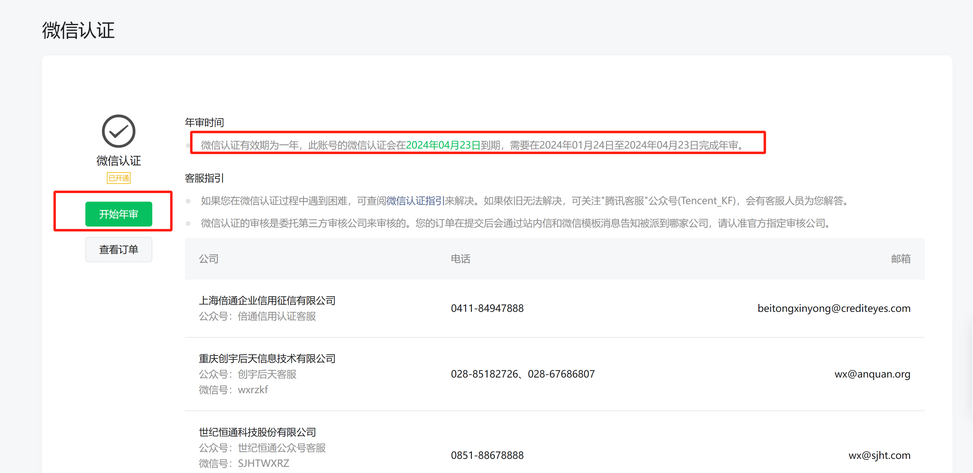 收到微信公众平台糸统通知年审认证续费