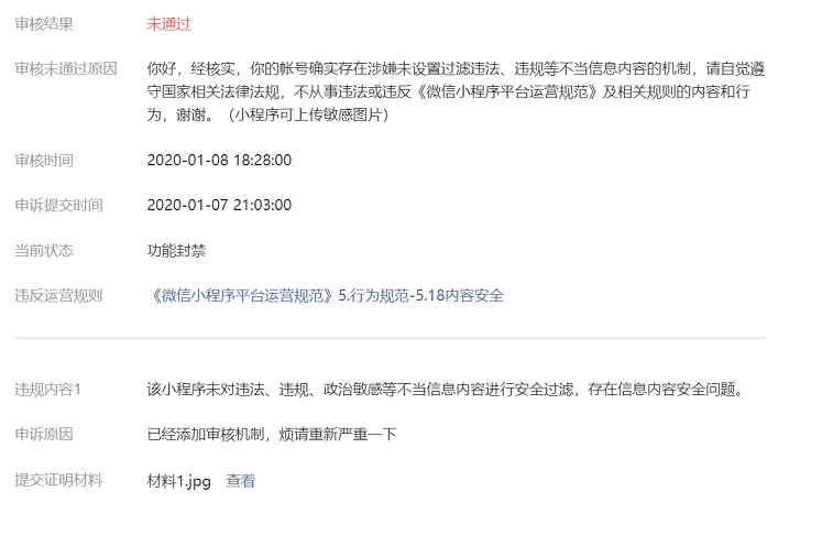 已按照整改申诉,设置过滤违法,违规等不当信息内容机制,烦请官方大大重新审核,希望能给个回复