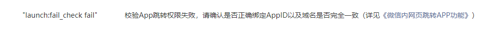 H5页面,唤起app,wx.invoke('launchApplication') 返回 fail_check fail,前段时间好使,最近开始报错了