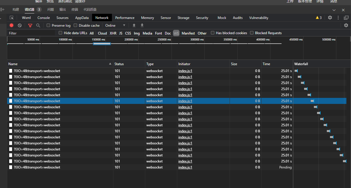 这是在干啥,一直反复的发包,却无法与我服务器socket通信,使用网页发一次包就能建立通信