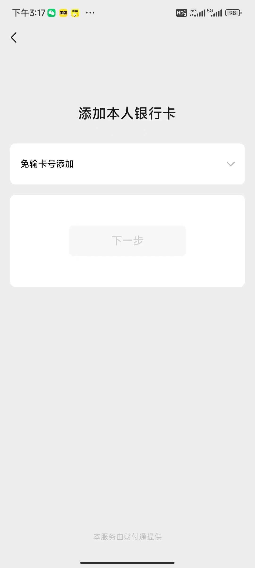 微信绑定银行卡没有输入框怎么办?