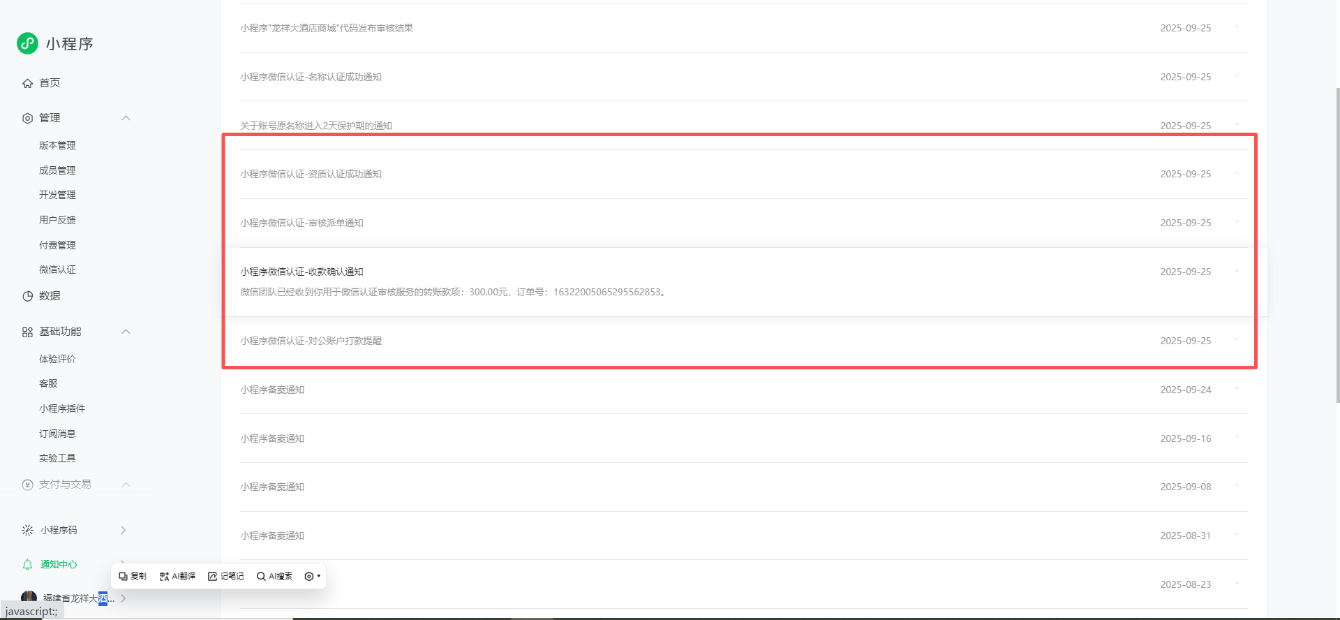 微信小程序认证了二十多天,9.25号支付了300元认证费用,至今没有开具发票,也联系不到相关客服。请问是什么意思