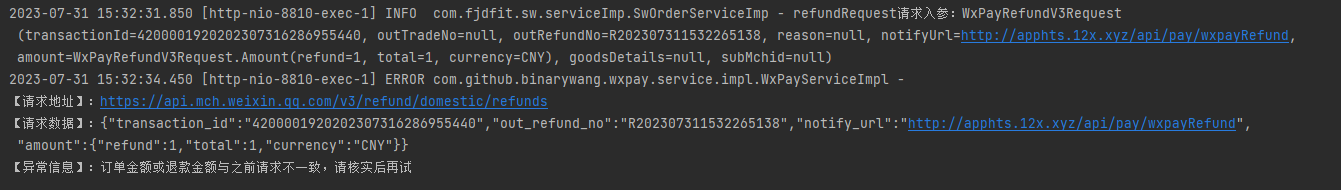 2023-07-31 15:32:34.450 [http-nio-8810-exec-1] ERROR com.github.binarywang.wxpay.service.impl.WxPayServiceImpl -