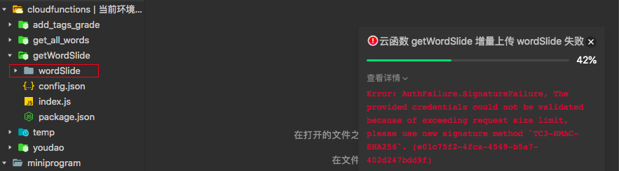 Error: AuthFailure.SignatureFailure, The provided credentials could not be validated because of exceeding request size limit, please use new signature method `TC3-HMAC-SHA256`. (e01c75f2-4fca-4549-b5a7-402d247bdd9f)