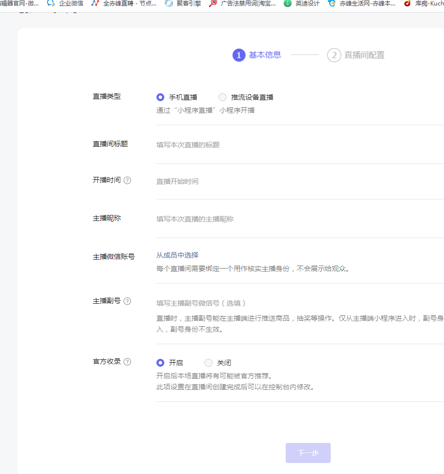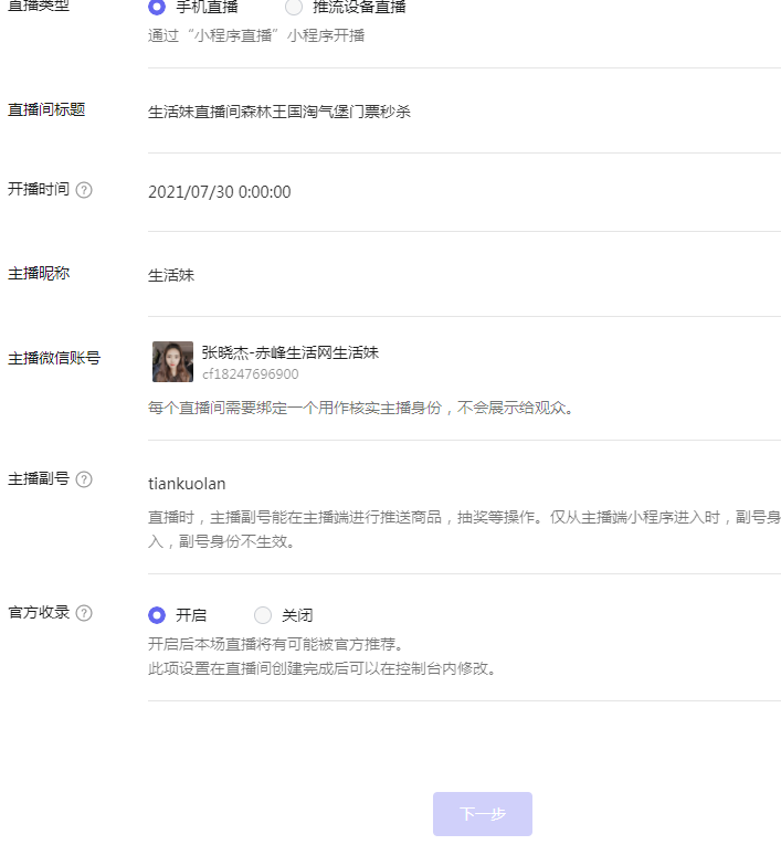 在微信小程序端创建新的直播间点不了下一步,填好所有信息还是点不了,是怎么回事?