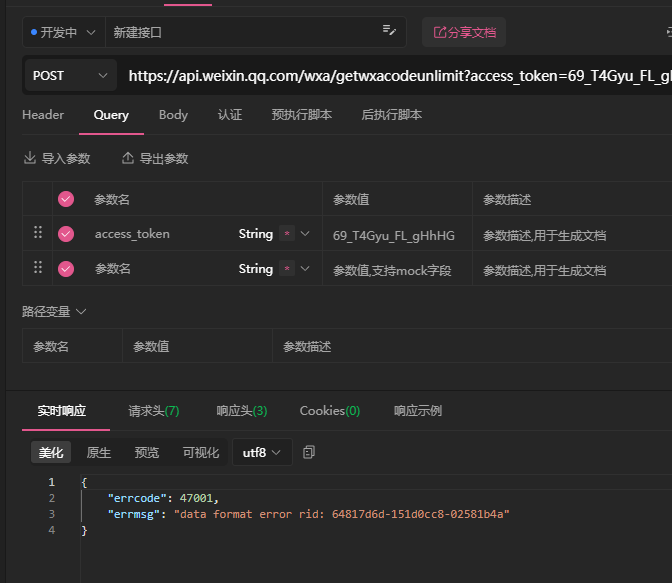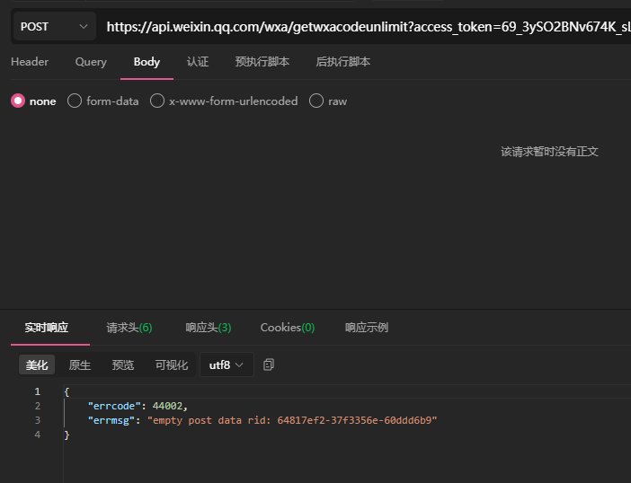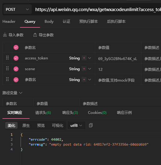 response: {"errcode":41001,"errmsg":"access_token missing rid: 64817608-3d29d7e2-213743b6"}