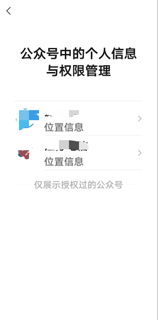 用户使用过某个公众号,公众号索取过位置权限,当用户关闭位置权限授权后,在【公众号中的个人信息与权限管理】页面仍展示该公众号的相关信息。