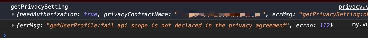 {errMsg: "getUserProfile:fail api scope is not declared in the privacy agreement", errno: 112}