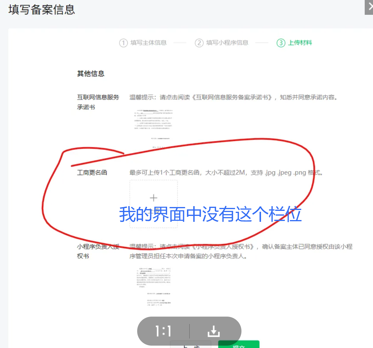 我们是首次申请小程序备案,使用公司新名称作为法人主体,但商标授权书是用公司的原名开具的,审核备案材料的客服要求,核准更名通知书必须要上传到指定的“工商变更函”栏位,但是首次备案,备案流程中并没有提供这个栏位;