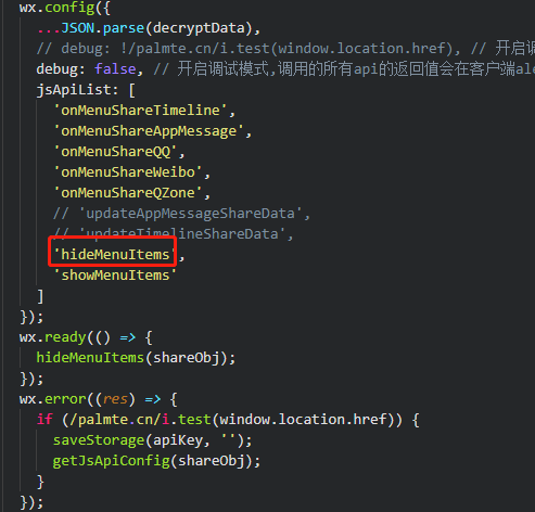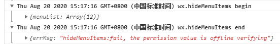 wx.ready之后,调用wx.hideMenuItems,控制台打印出hideMenuItems:fail the permission value is offline verifying