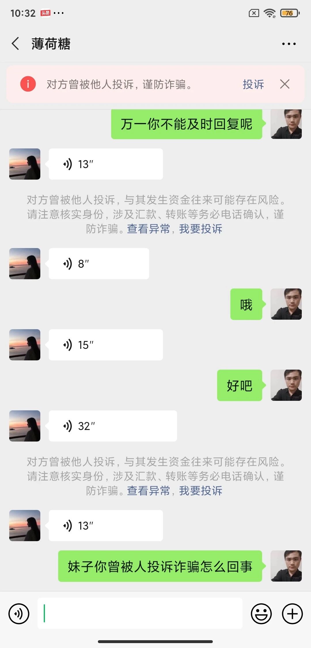 没错,对面那个人被投诉过。被系统标记了。