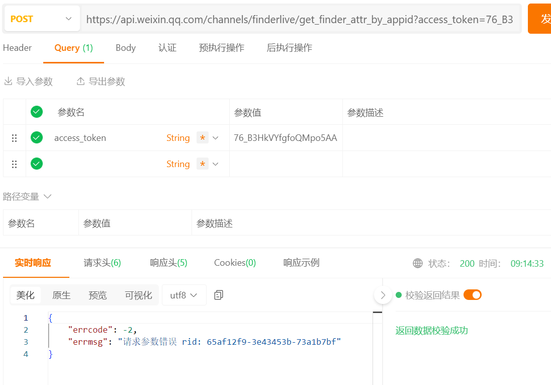 改成GET方式请求,并把query的参数去除掉,或者把请求链接里的?access_token=xxxx这段去掉,