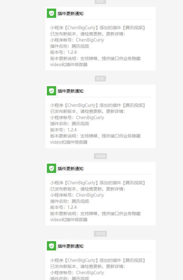 我其中一个小程序使用了腾讯视频的插件,然后最近这个插件一更新就疯狂提醒。怎么解决.....
