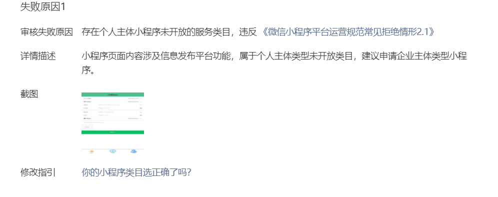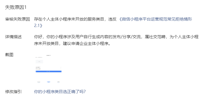 后续如果小程序存在类目不符问题可能会在代码审核或已发布运营时,收到平台的审核通知或建议修改通知。因此小编整理了以下常见类目的建议及案例: