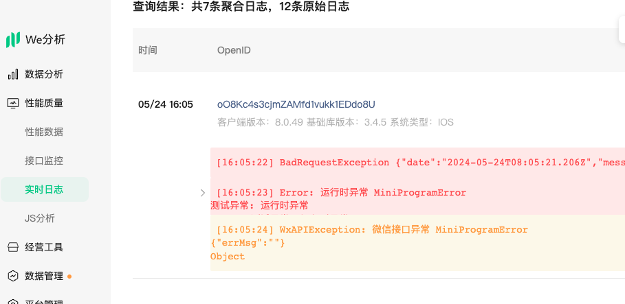 - 什么情况 JS 分析中会有数据?比如:微信小程序自动捕获异常记录?与实时日志一样需要手动调用接口?自动导入实时日志中的 error 级别错误作为数据?