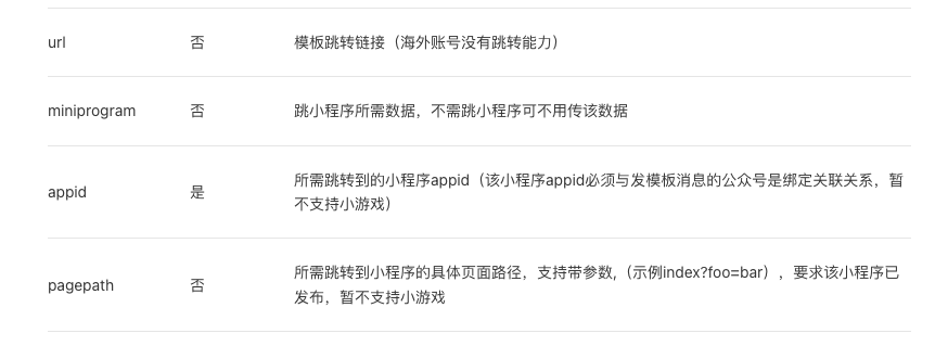 指的是点击模板后跳转到url或者是小程序吗?参考文档上方发送模板消息中的请求参数即可。