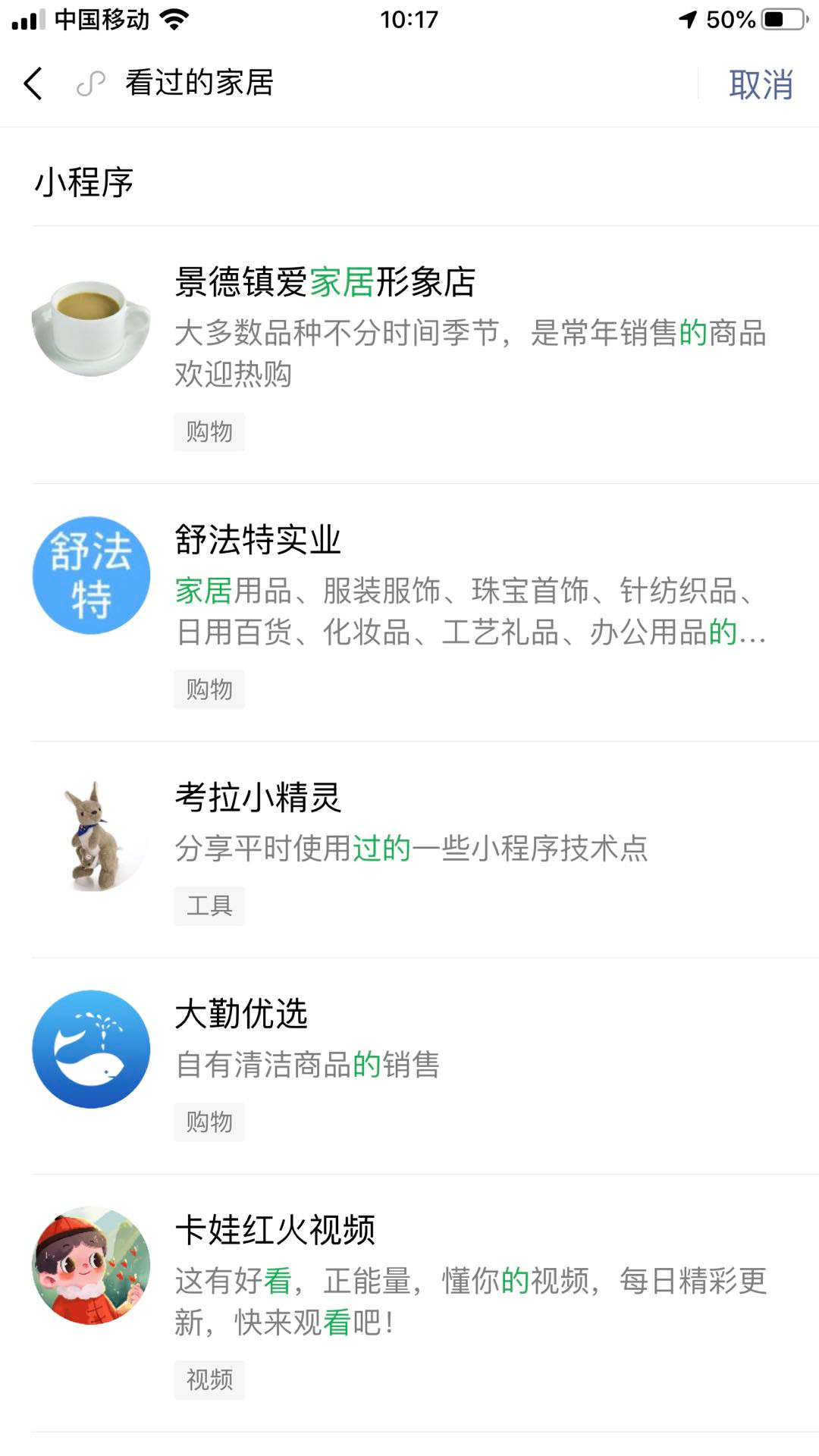 APPID: wx4ca54d1c3d92eb41, 名称: 看过的家居
