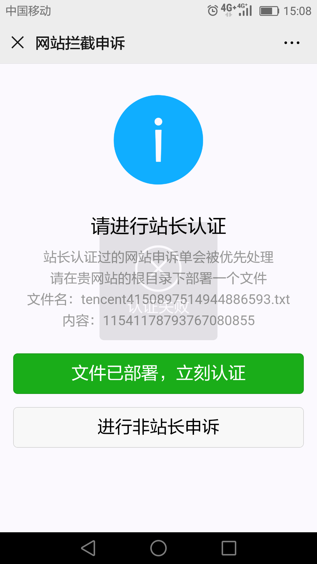 你好,站长根目录认证 显示失败 站长验证部署好了文件也是一直提示验证失败 www.vic18.com 请协助解封