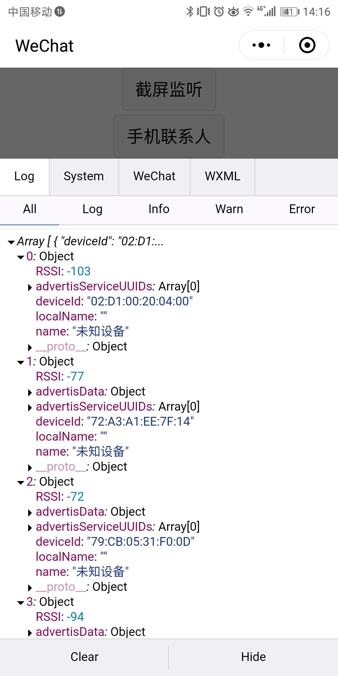 调用蓝牙API onBluetoothDeviceFound /getBluetoothDevices ,返回能得到数据,但是返回的数组元素的deviceId和 身边测试的蓝牙设备(android)的Mac地址 不一致。
