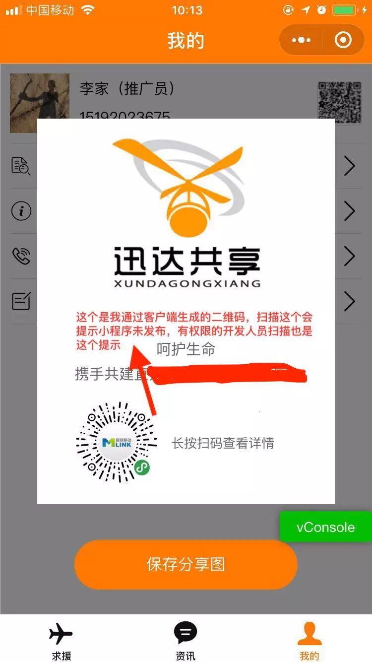 开发工具只能测试转发出去的页面,测试不了我分享出去的二维码