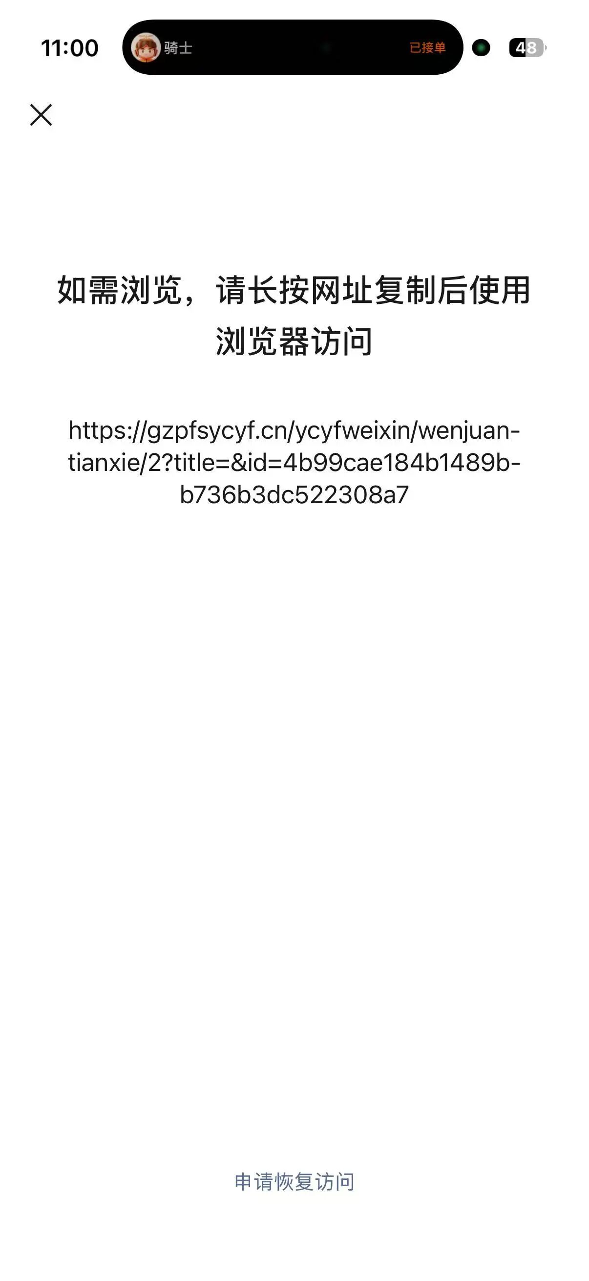 你好,现已恢复微信内直接访问的服务,请知悉。