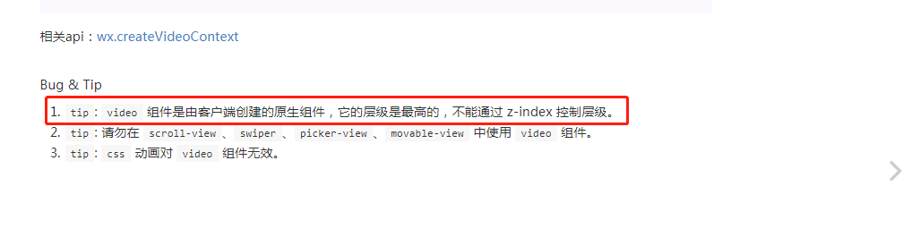 tip: video 组件是由客户端创建的原生组件,它的层级是最高的,不能通过 z-index 控制层级。