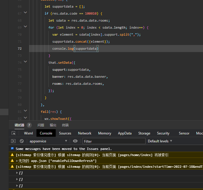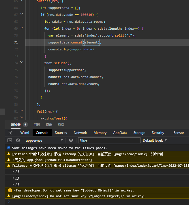 对item.support使用wx:for 其实就相当于js中sdata[index].support,你对support进行了分割,自然就能使用wx:for