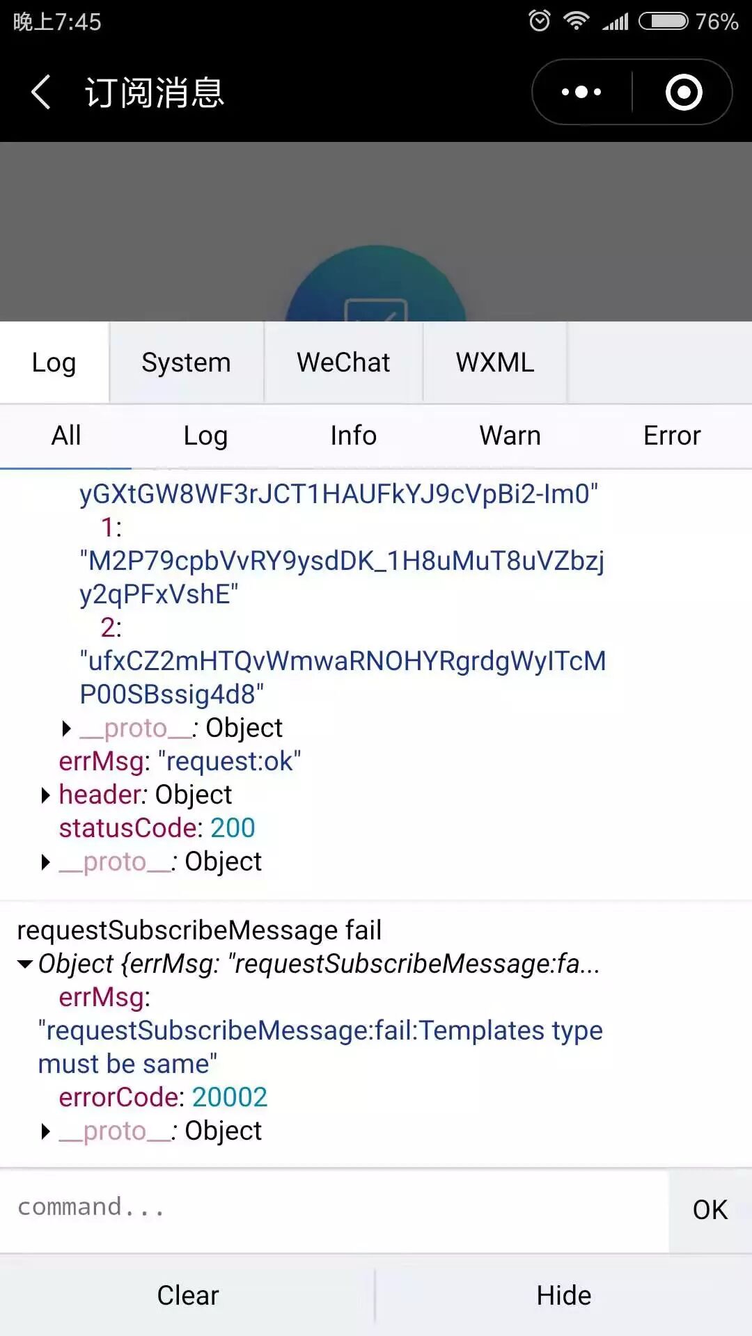 wx.requestSubscribeMessage失败报错20002
