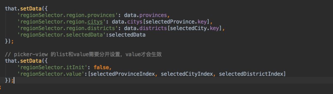 picker-view初始化的时候,我们都会设置数据源和初始索引值,结果发现放到一次setData里既然不生效,分成2次setData就可以了,应该是设置数据源的时间点在初始值之后了,因为setData接收的是一个hash对象,而hash对象是没有先后顺序的,所以就可能存在初始值在数据源之前设置了,当然初始值不可能生效。