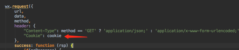 但是在调用wx.request的时候,是可以设置cookie header头的,所以如果后台接口验证的需要cookie支持,可以直接在这里设置即可,但是需要注意:android的版本的小程序会把cookie键名自动改为小写,如果后台是通过大写读取的话,可能就取不到值了,暂时还不确认新版是否已修复这个问题。
