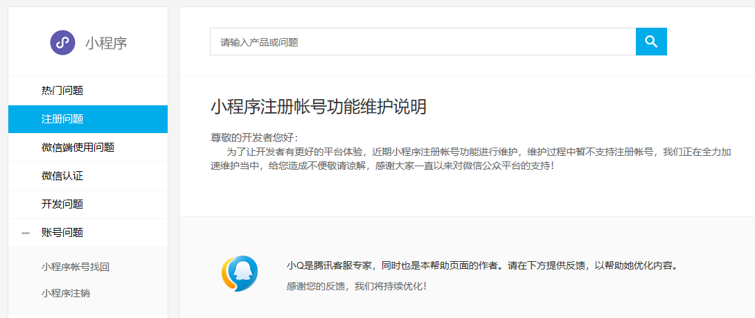 由于系统升级,小程序注册账号功能进行维护,维护过程中暂不支持注册帐号,我们正在全力加速维护中。功能恢复时间将后续通知。