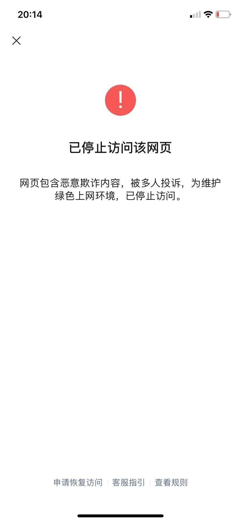 我们内部前期根据微信文档做的URL跳转微信小程序,近期部分少量用户反馈跳转会提示“已停止访问该网页”;但是我们内部的人测试都跳转没问题;这两个URL经过腾讯安全网址中心检测也没有问题,请专员帮忙看看呢;跳转的内容就是个用户自助服务页面;看当前提示还没进入微信环境,是不是手机管家的问题呀?目前安卓和IOS都存在用户反馈,链接贴上提交不了 ,请看到联系我来发地址