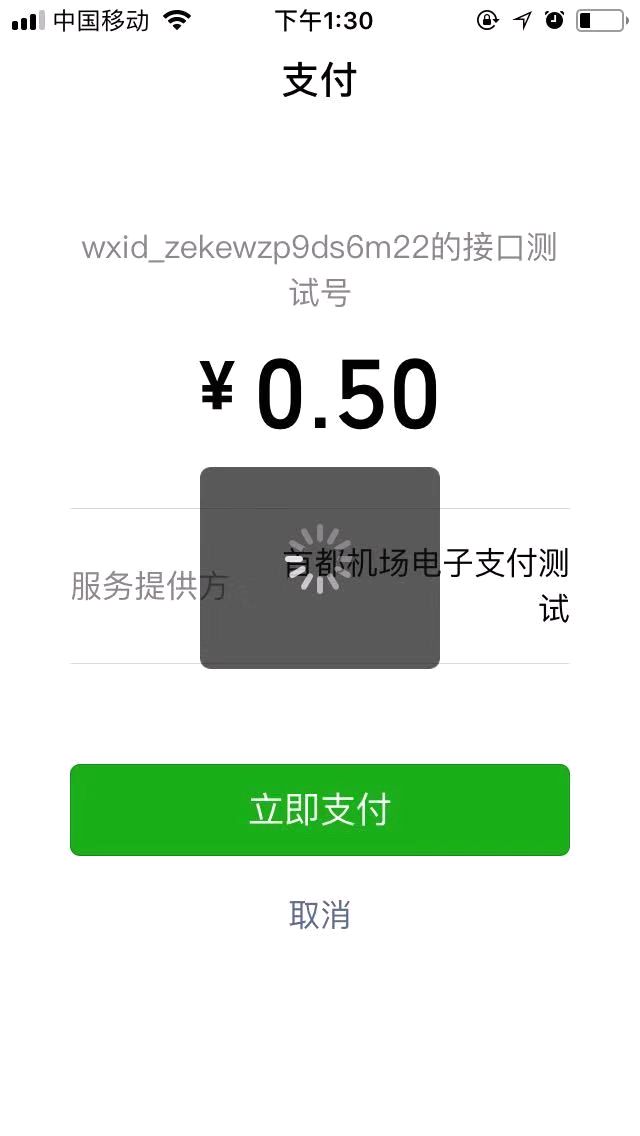 这里我的参数我用小程序支付API调用成功过,但是用插件支付功能页点立即支付的时候,就一直卡在loading这里,也没有微信支付弹窗,这个loading也不是我主动调用api打开的,然后就赶紧一直卡这里了