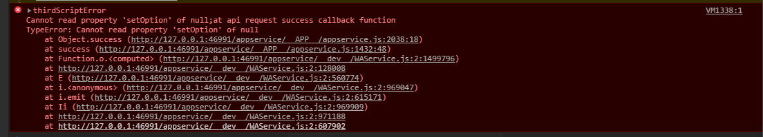},800)这可以算是echarts的一个坑了,init方法是异步的也就是说在你setOption的时候 初始化图表init还没执行完 所以此时setOption为null,你先用延迟计时器来解决这个问题吧