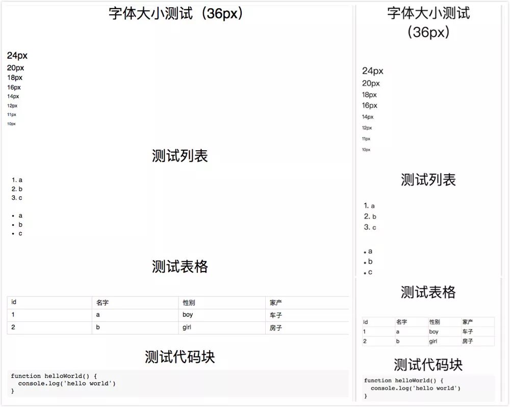 对字体大小、列表、表格和代码块的解析