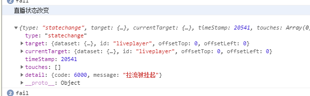 liveplayer bindstatechange 提示 "拉流被挂起"