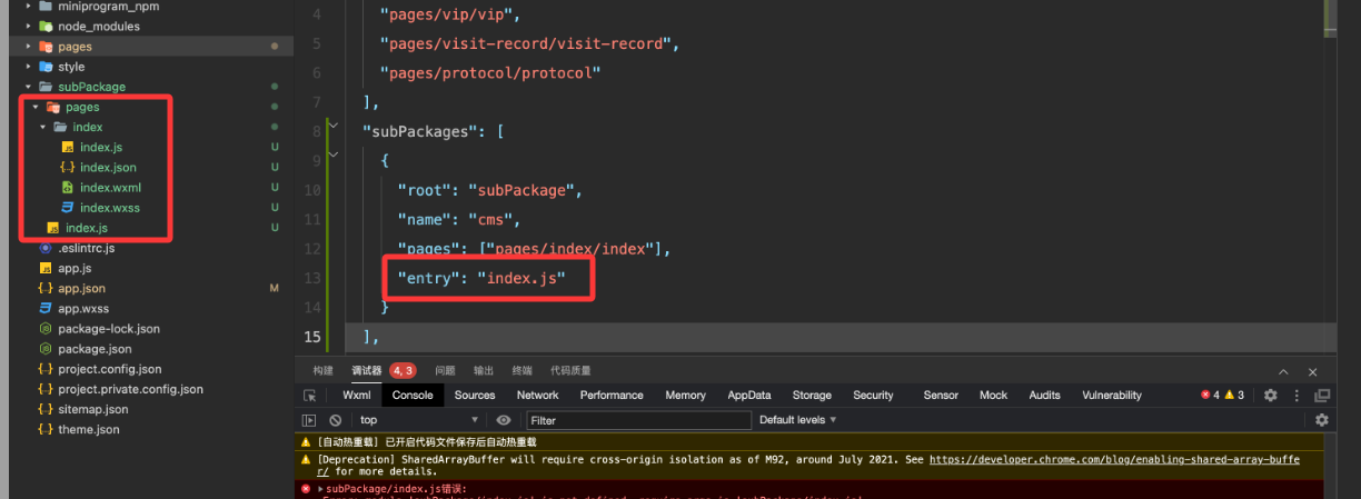 分包入口文件路径写错了,应该是pages/index.js