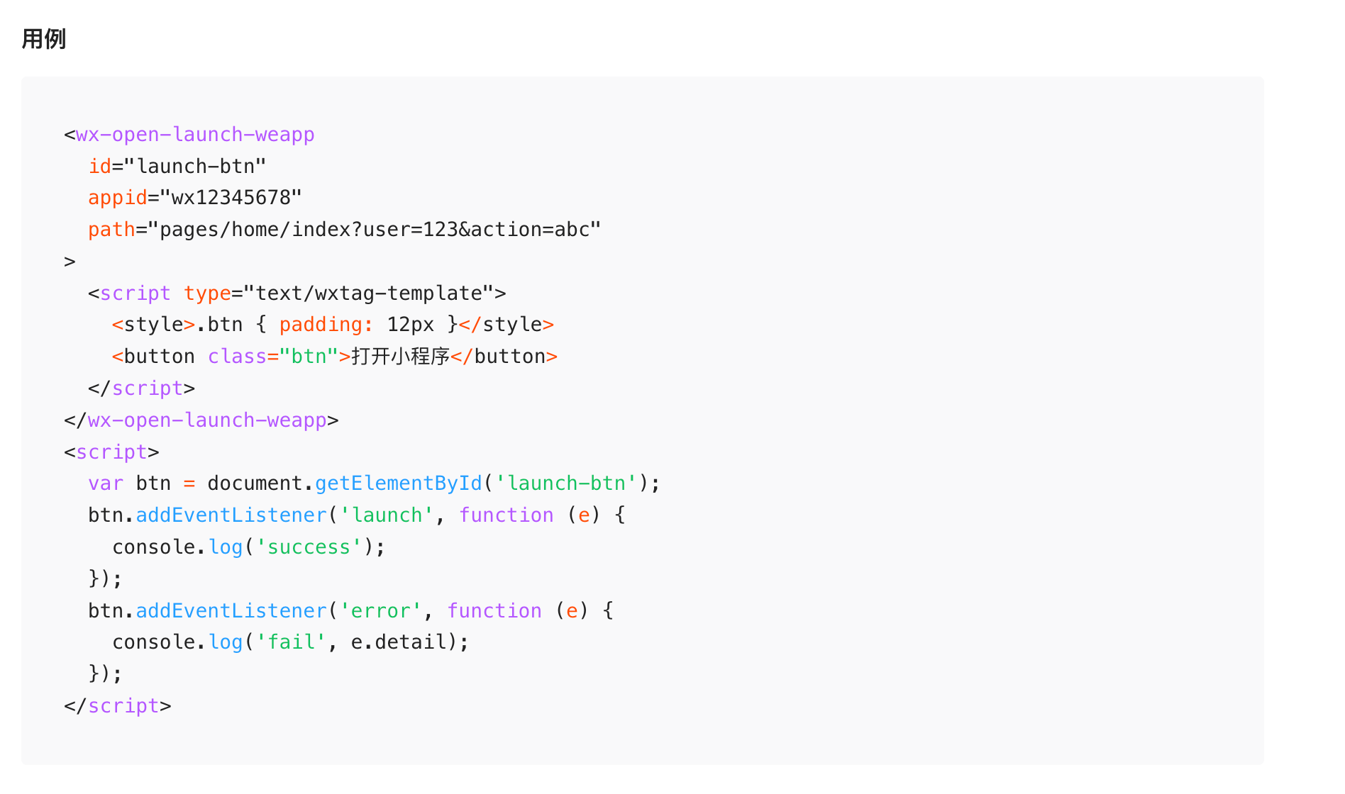 https://developers.weixin.qq.com/doc/service/guide/h5/opentag.html#%E8%B7%B3%E8%BD%AC%E5%B0%8F%E7%A8%8B%E5%BA%8F%EF%BC%9Awx-open-launch-weapp