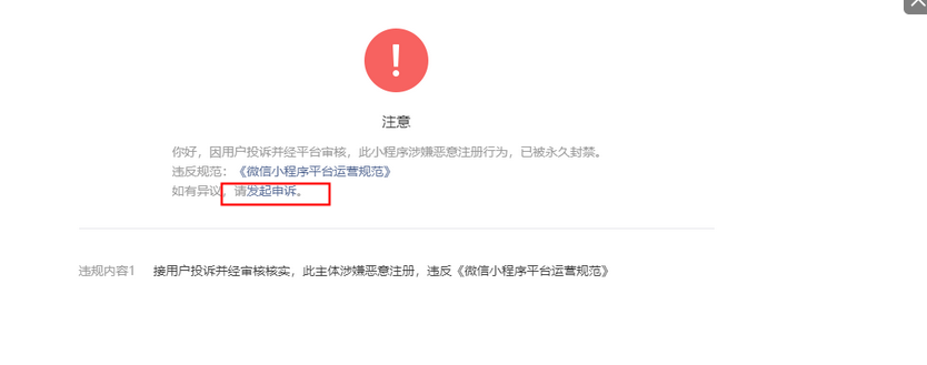 同一个主体,存在小程序或者公众号违规、被投诉,你就立马连续注册,被微信后台判断恶意注册