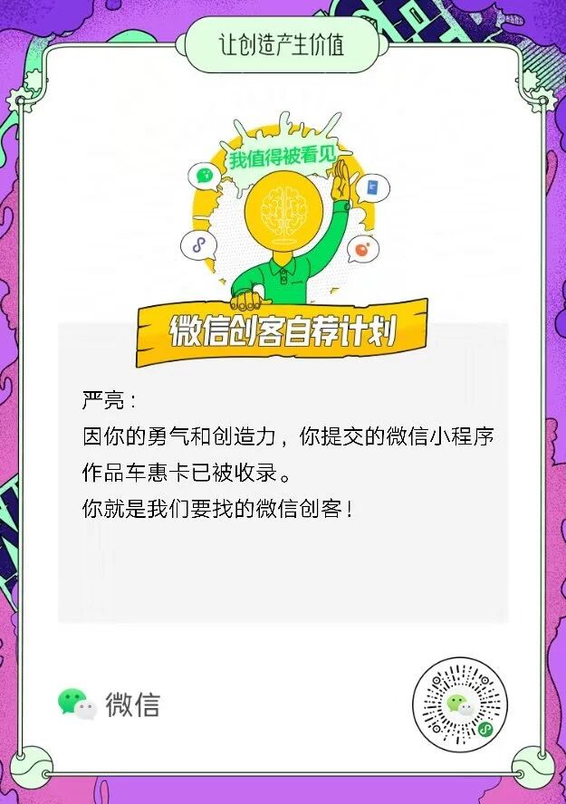 请扫描以下小程序码或微信搜一搜“微信创客”马上自荐: