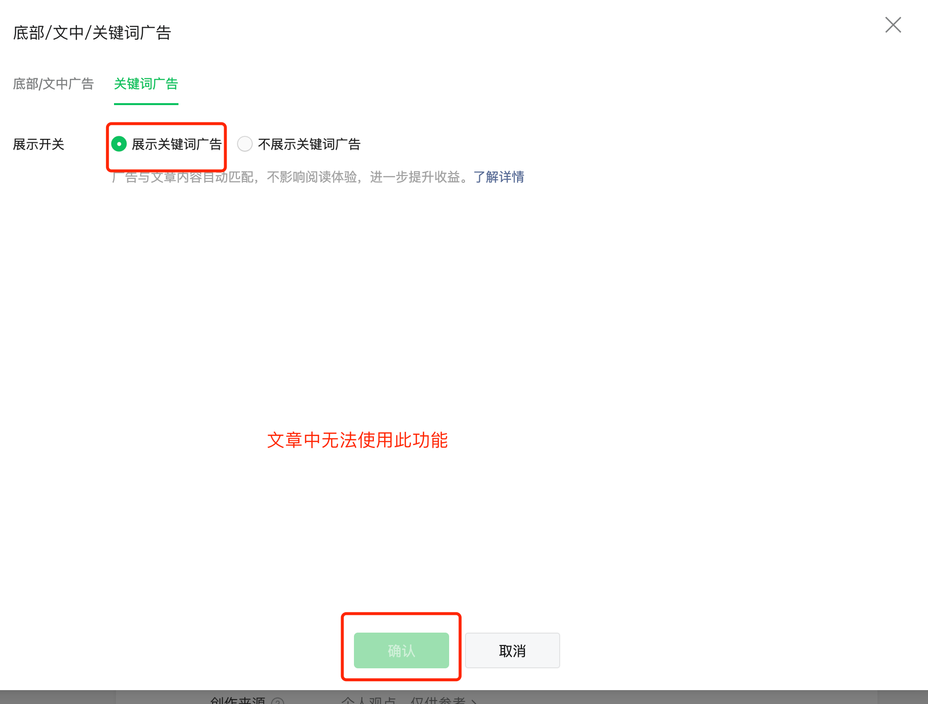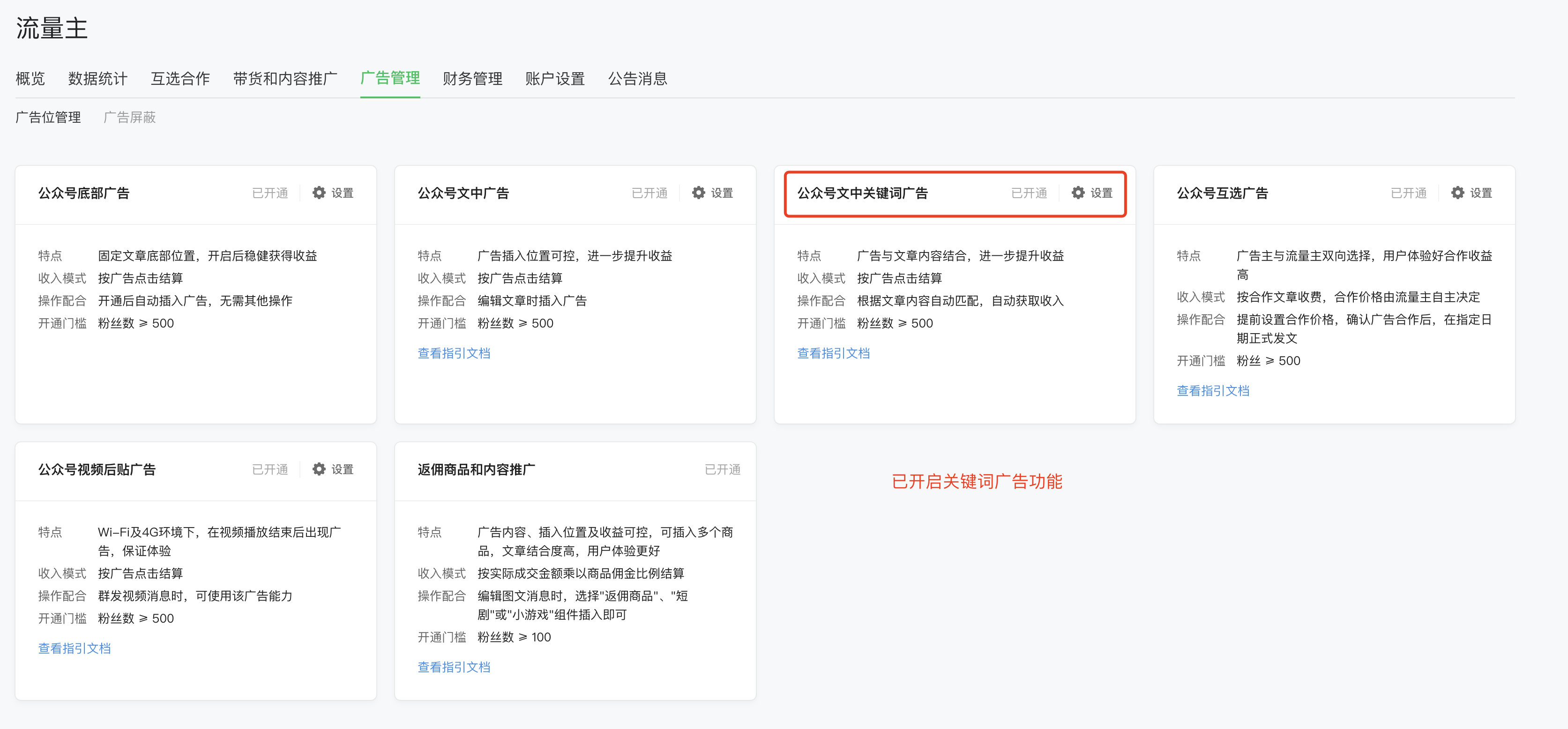 默认就是开启展示功能的,而且我觉得没启用吧,拿了几个大号和小号的数据,关键词广告数据都是空的。