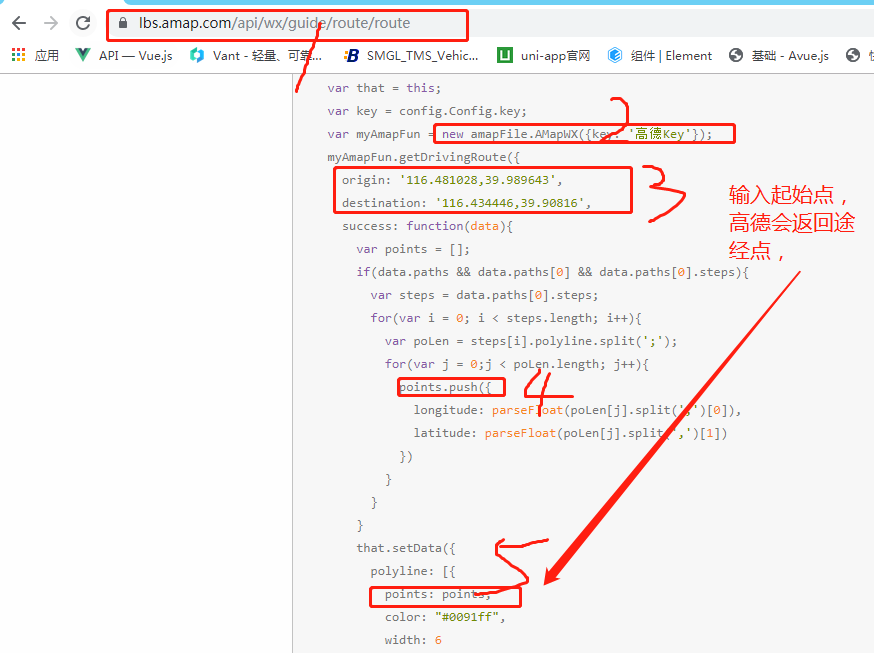 高德返回点途经点就是规划的路线,有无数个坐标点构成
