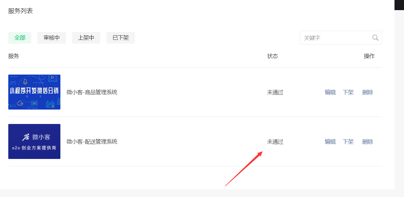 微信服务商后台,小商店插件服务发布上架服务,审核未通过,不反馈什么原因,开发者不清楚问题,无法作出修改和调整,希望反馈审核未通过原因