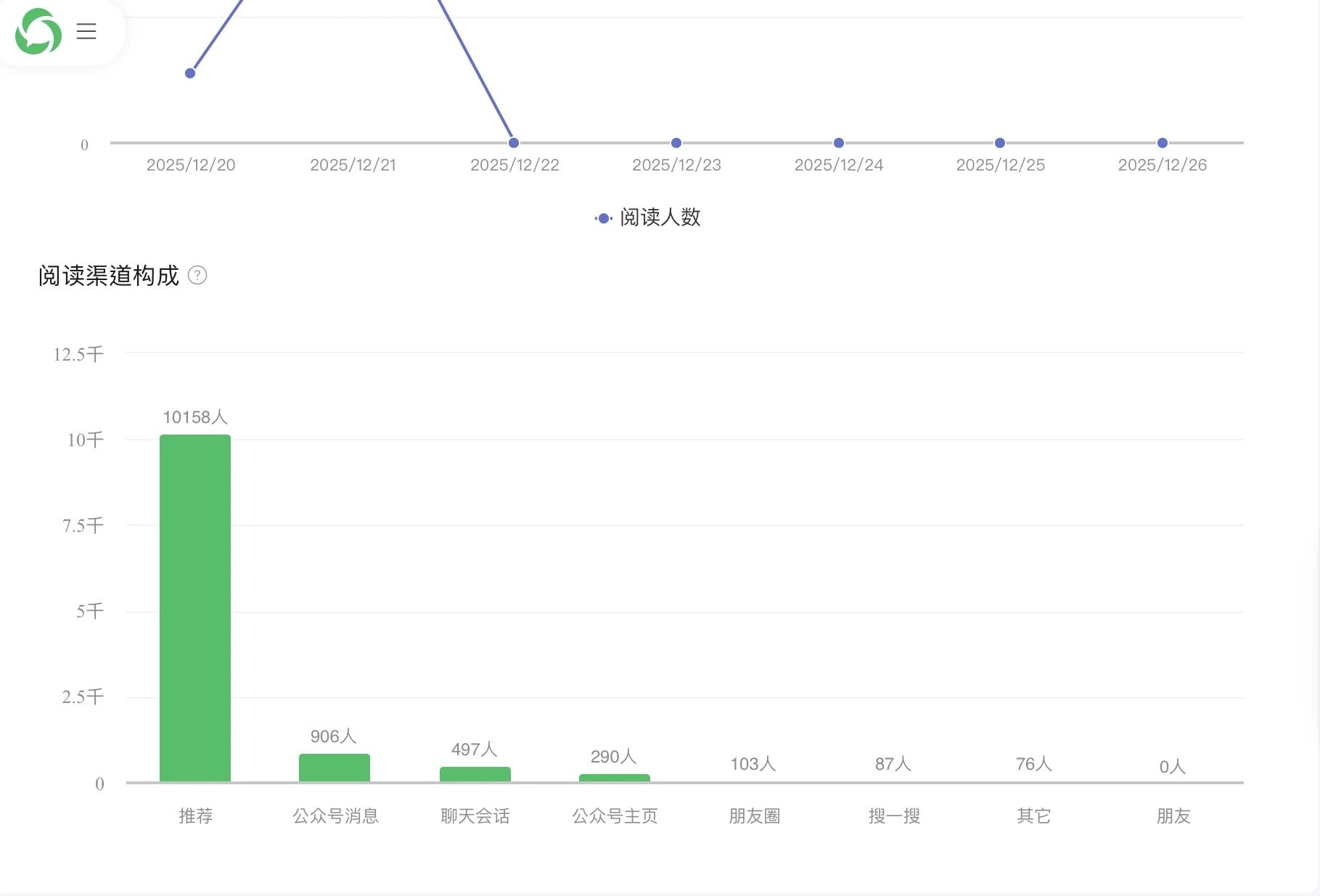 如图所示同一个文章来源为推荐和公众号主页的数据两个平台不一样,这是怎么回事
