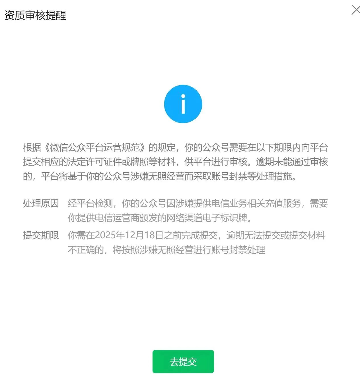 该公众号核心运营业务为卡券二手交易相关服务推广,自运营以来始终秉持合规经营原则,此次被封禁后已第一时间暂停所有运营活动,对账号内历史发布内容、菜单设置、回复话术等进行全面自查。发现并无任何关联内容或引导文字,还求查证