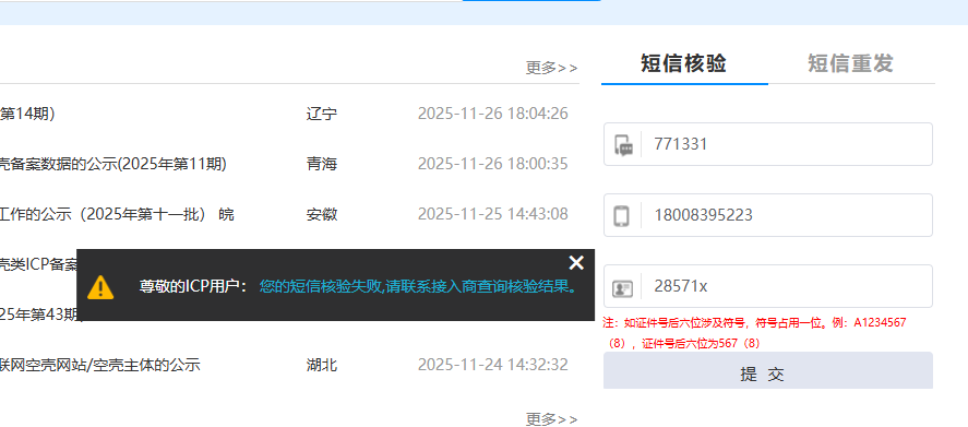 我全部都核实过了,主体负责人,电话,验证码都是正确的,还是通过不