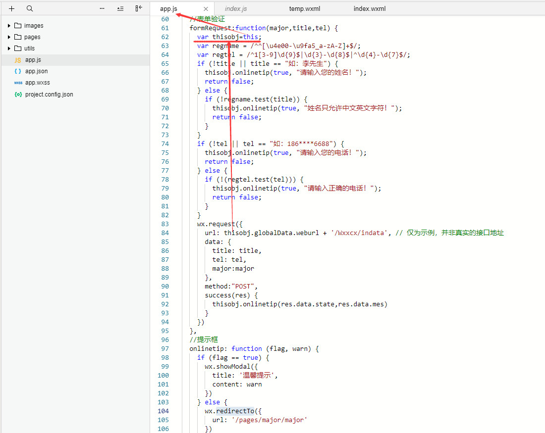 不是说改你的流程,而是改你放的位置,把这个onlinetip方法移动到最上面,就和在index.js页面的const app =getApp()这样的位置。能明白吗?
